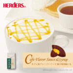 - ホイップクリーム、カフェ用フレーバーソース キャラメル、黒ごま、いもけんぴをトッピング。