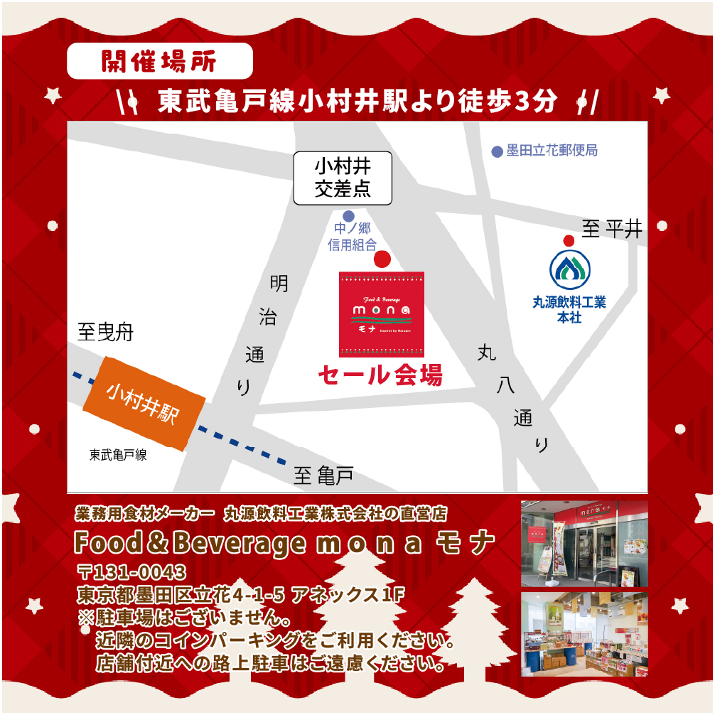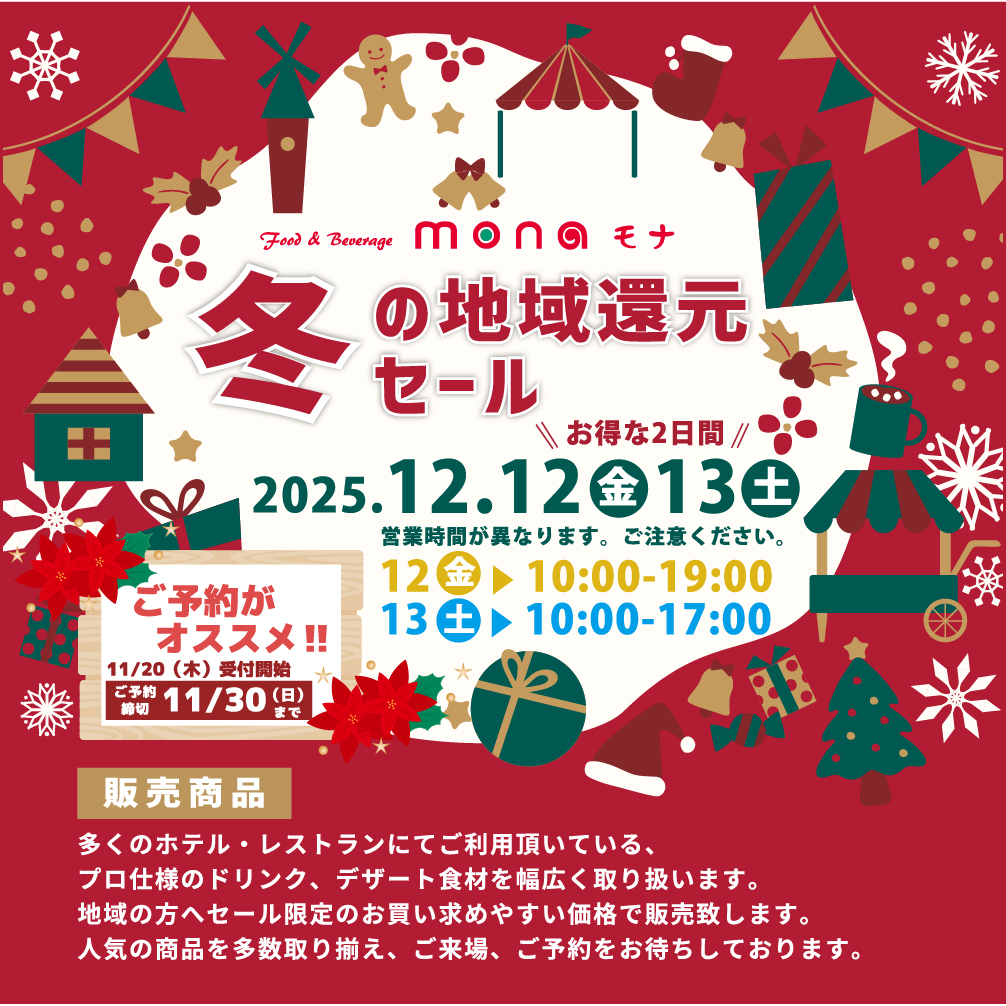 12/12(金)・13(土)開催!【丸源飲料の直営店mona】冬の地域還元セールご案内