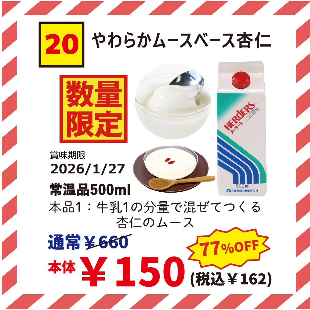 販売価格:通常660円⇒大特価‼ 150円(税込162円) 77%OFF‼