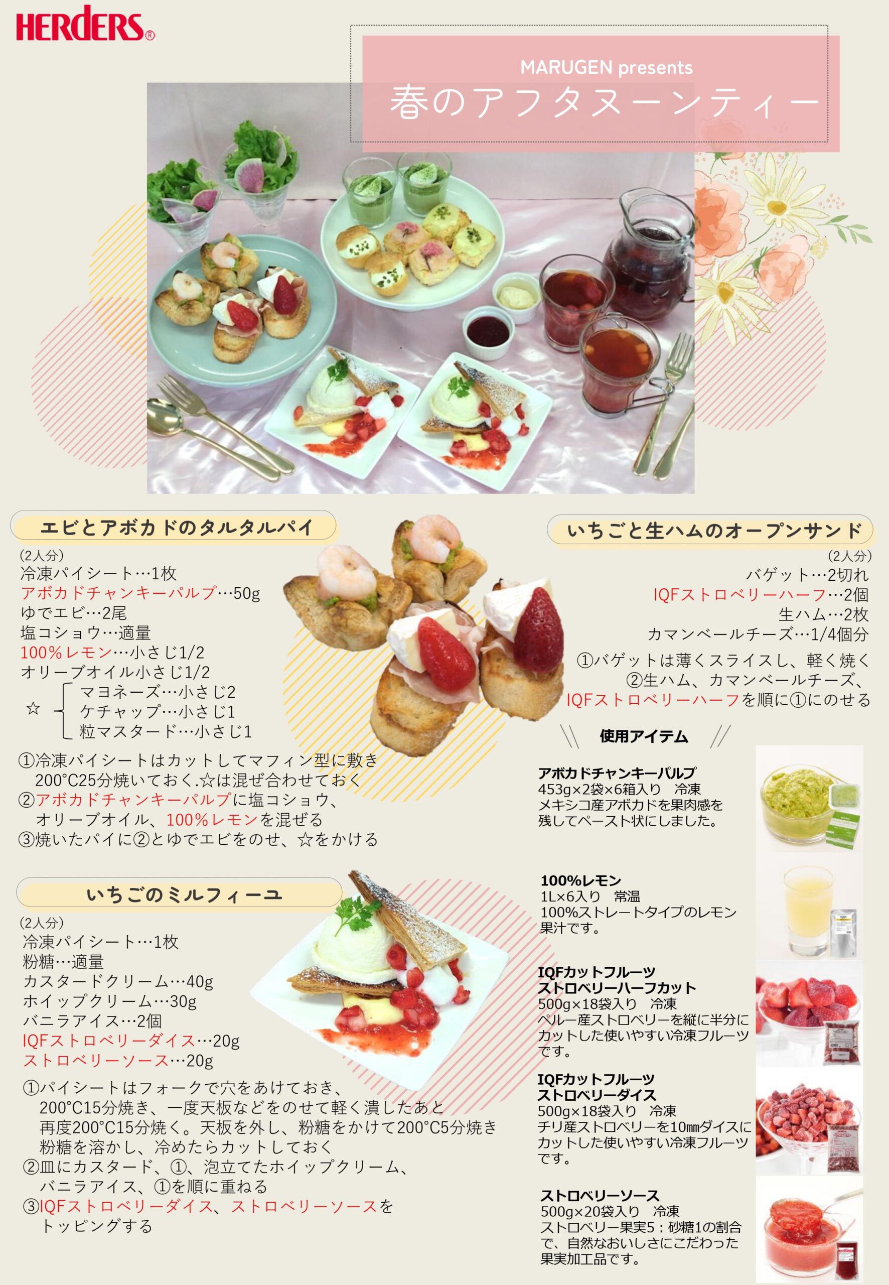さて、本日は見た目にも華やかな春のアフタヌーンティーメニューのレシピを 前編(本日)・後編(2/27UP予定)の 2回に分けてご紹介いたします!