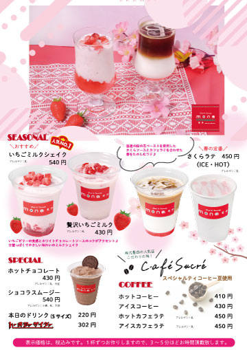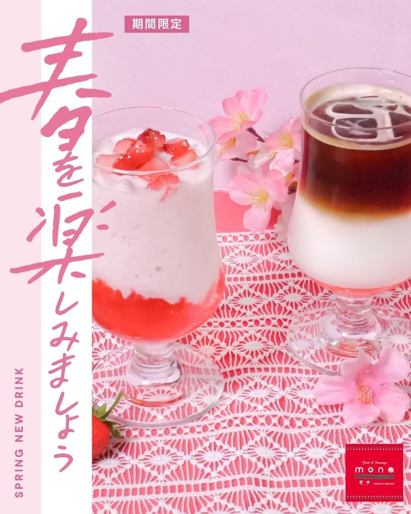 弊社直営店舗「Food&Beverage monaモナ」では、春のドリンクメニューの販売を開始しました!