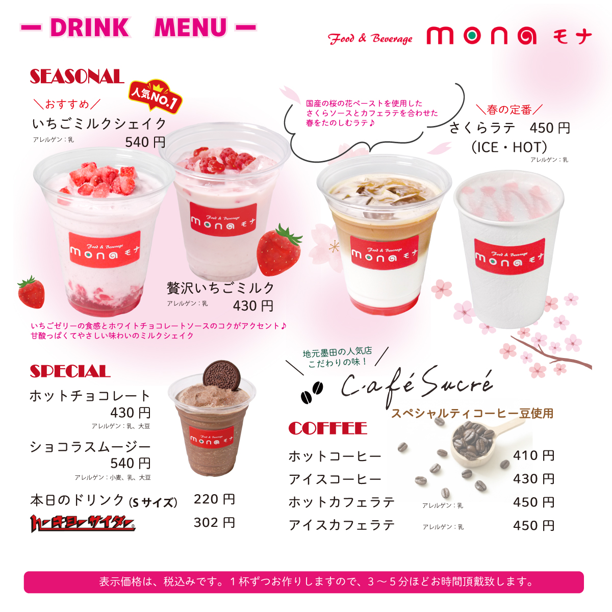 【直営店mona】好評販売中!春のドリンクメニュー
